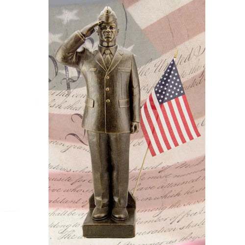Their domain is the sky and their cause is freedom. This sculpted pilot pays tribute to those men and women of the Air Force who carry on a proud tradition with a heroic and daring spirit, whether on land in dress blues or on maneuvers in flight suits. This sculpture is made in America of cast stone and comes in an array of color choices. We have sculpted this new African American airman in tribute to the military arm forces.