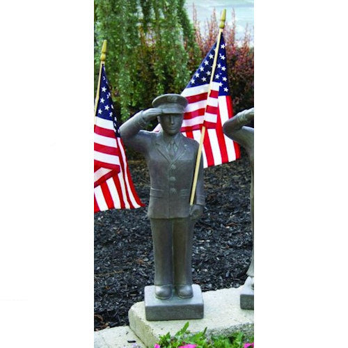 United States Air Force this sculpture represents our soldiers in Air and Space. These soldiers take their place at the forefront of war-fighting, peacekeeping, and humanitarian aid. This most technologically sophisticated military branch and one of the largest and most important institutions in the world. An organization that measures success by its impact on the world, our country and the lives of the men and women who hear the call and join our the ranks of the United States Air Force. American Flag Included and made of durable cast stone in America. Shown in Classic patina #76 that is recommended. But comes in many other colored choices. Made in America.