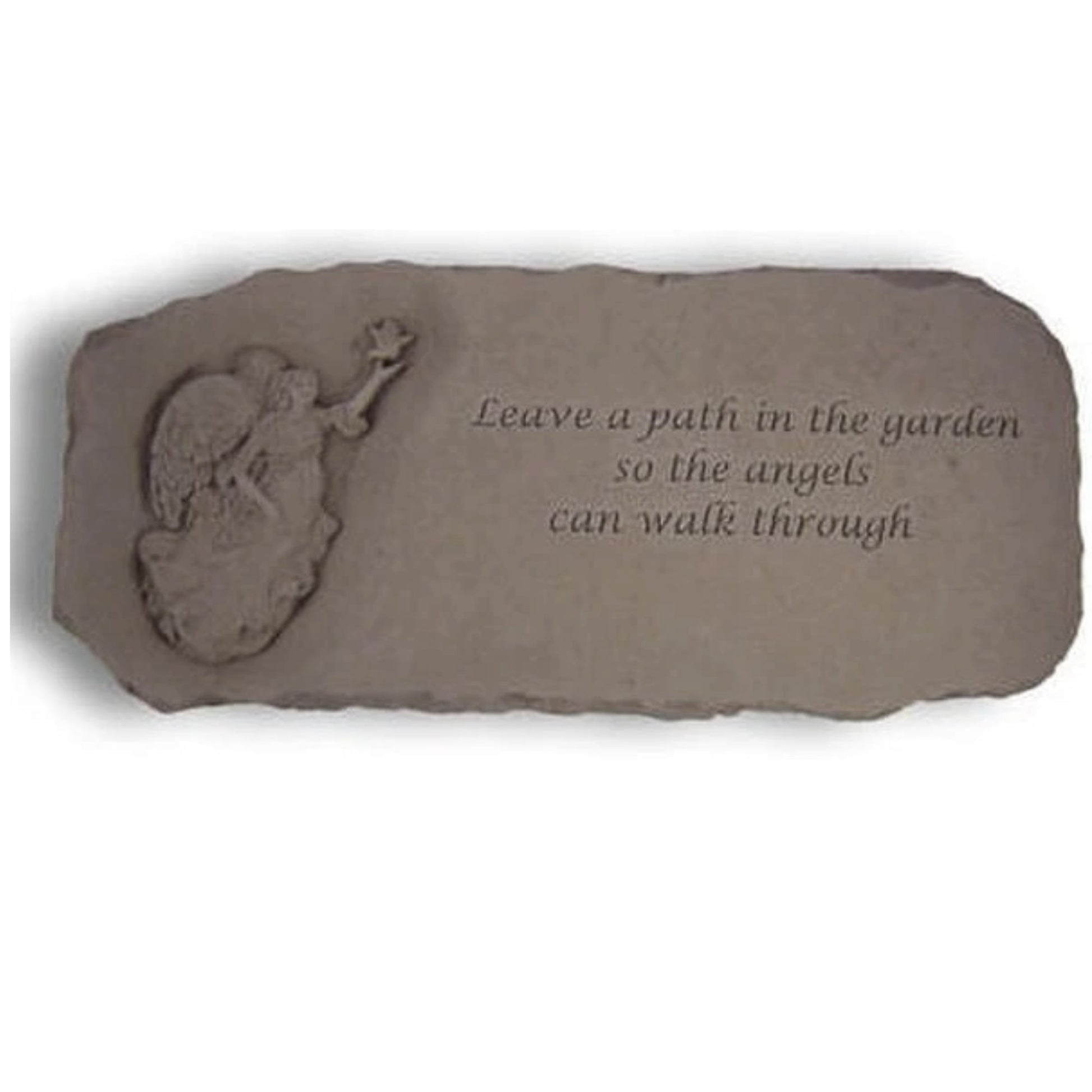 Angel cast stone garden bench with the verse of, Leave a path in the garden so the angels can walk through. Our cast stone memorial garden bench creates a serine resting place and a long lasting memorial to a loved one. As the special touch to an elegant garden, our substantial, amazingly detailed bench is engraved with the words, If you pause to reflect, you will find time to count your blessings. Made in the USA and hand-poured of heavyweight cast stone, our memorial garden bench has the look and feel of a chiseled stone. Some assembly required.