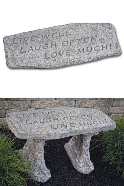 These signature petite sized benches are made to order with your favorite quotations and notations adding a bit of wisdom and personality to your outdoor décor. They are all hand-crafted and made in the U.S.A in durable light weight cast stone, providing years of enjoyment.