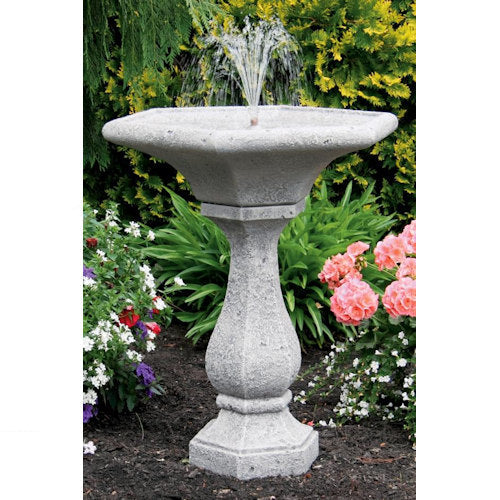 Chelsea Fleur De Lis Hexagon Fountain is a wonderful water display and is also an affordable elegant fountain or even possibly a birdbath. Made to order this unusually shaped fountain would make a wonderful addition to your garden decor.