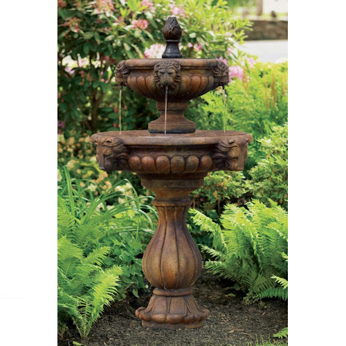 A beautiful fountain with great detail in the scalloped form around the bottom basin and the small lion heads spouting out water from the top basin. The Lion Head Fountain is ready to install with easy-to-follow instructions, the indoor/outdoor UL-listed pump uses normal household current. Purchase this fountain and enhance your garden decor for years of enjoyment.