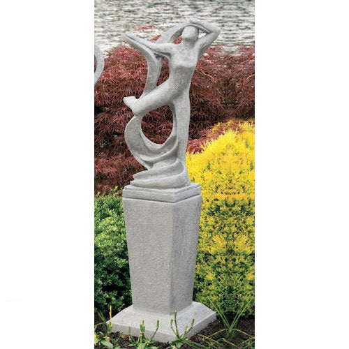 We have created this large scale sculpture of a dancer and paired up with a contemporary vase pedestal. Cast in of quality cast stone with a classic stone finish of old stone but comes in an array of color choices, this is an instant focal point for your garden or home gallery. Makes a wonderful gift for those who are joyful about the garden or both who love to dance. Dance in the garden sculpture size is H:33" W:21" L:11.5" B:11.5"SQ and contemporary vase pedestal isH:26" T:11.5"SQ B:16"SQoverall weight is 240 pounds.