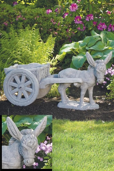 Whether placed among flowers, by a walkway, or as a welcoming garden accent, this donkey and cart sculpture is sure to bring smiles for generations to come.