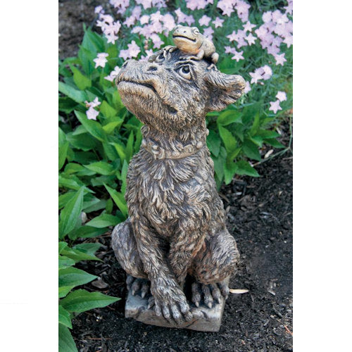 This adorable Drog Sterling Wood Gargoyle Statue has a cute little frog that sit upon his head. Made of durable cast stone and comes with may color choices.
