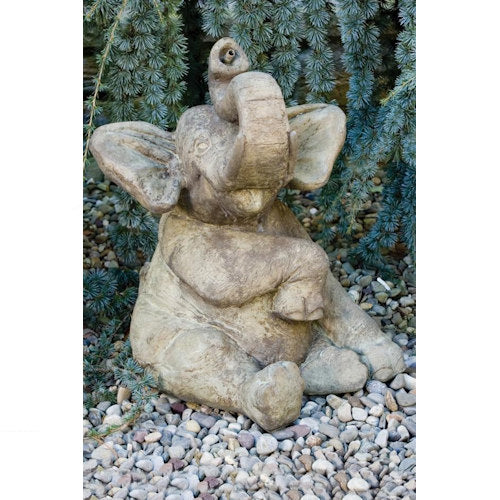 Elephant Sitting Piped Water Feature Statue