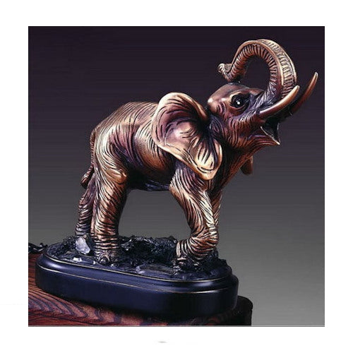 Elephant Trunk Up Sculpture. The elephant is a symbol of strength, power, stability and wisdom. Common superstition has it that an elephant carving or picture should always face the door if you want to bring good luck into the house. It also protects the home when facing the entrance making sure only good fortune passes through. The most common belief is that the trunk has to be up for good luck. This elephant figurine is also wonderful as an award or presentational gift, base size is 4.5" W x 2.5" D x 0.5" High.