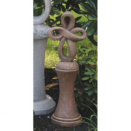 Due to popular request of the we have created the smaller eternal cross with pedestal. Eternity Cross statuary is made of cast stone and is made solid. This cross can symbolizes eternal life, eternal love, eternal love for god and can take its place in your spiritual garden. This monumental work of art is unique and emanate peace and tranquility, perfect for any church, serene garden or home gallery. Come in an array of color choices. Please see other related crosses for the available sizes and combos of matching pedestals. W12.25" x BD7" x 18.25" High cross and pedestal is overall height is 36.5 inches high, top diameter is 7.5 x base diameter is 10 inches the height of the pedestal is 18.25 inches. this is two part sculpture.