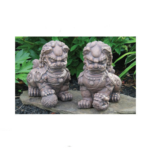 Introducing our Asian Foo Dog Pair Garden Sculptures, available exclusively at Statue.com! These exquisite guardian lions, also known as komainu, shishi, or foo dogs, will bring an air of mystique and charm to any garden or outdoor space. Crafted in America from high-quality cast stone, these unique and impressive Asian Foo Dog Pair Garden Sculptures are perfect for those who love to add a touch of character to their surroundings. These captivating animals are revered in traditional Chinese and Japanese culture as symbols of courage, power, and protection. Standing at a height of 13 inches, these garden sculptures are designed to impress even the most discerning of buyers. The intricate detailing is impeccable, showcasing the timeless beauty and sophistication of these mythical creatures. Not only will they add an element of elegance to your dΓ©cor, but they will also serve as a deterrent to any unwanted visitors, embodying the guardianship they represent. Invest in this impressive piece of art today and enjoy these magical Foo Dogs for years to come! Add a touch of the Far East to your outdoor space and create your own Eastern-inspired oasis. Shop Statuary and order your very own Asian Foo Dog Pair Garden Sculptures today at Statue.com!