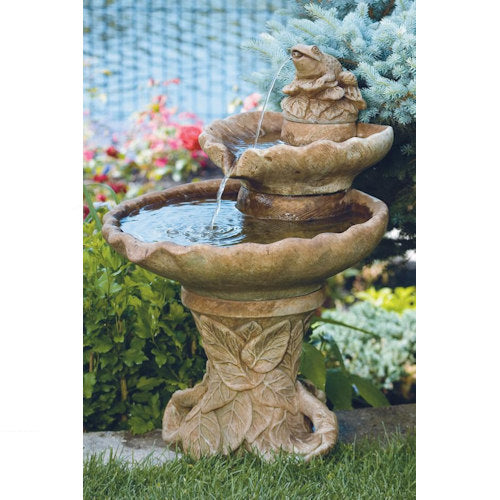 Intricately detailed, this recirculating fountain has a little frog spouting water into one basin which then flows into another larger basin. It is easily installed and uses normal household current. Available in any of the Massarelli finishes it will surely complement your garden or patio décor. Made in America.