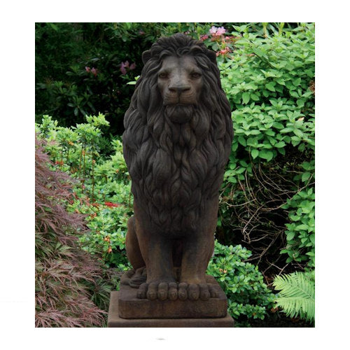 This is our largest lion sculpture we offer at Statue.com. This regal giant sitting lion garden statue is sweeping grandeur of Italian estates is yours when you welcome the sophisticated, architectural drama of our large lion statue to your home or garden. Proudly seated with a regal powerfully muscular icon will lend quiet strength and courage whether flanking an entryway or standing sentinel near a garden gate. Unparalleled as classic art, our enviable, quality cast stone, is a wonderful sculpture is a study in affordable elegance. Comes in an array of color choices.