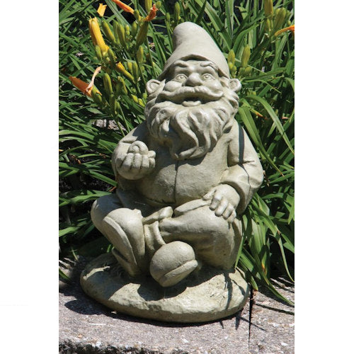 Gnome with snail garden sculpture, a wonderful gift for the garden lover and one who collects gnomes sculptures. With ageless wit and whimsy as their calling card, who better to welcome guests than the forest gnomes who are currently all the rage in Northern Europe. Did you know that peace-loving garden gnomes are creatures set apart to nurture and protect the earth as well as all its inhabitants. They live underground and help all beings, great and small with food, shelter, and protection from mutual enemies. Bring their helpful and protective natures to your backyard. Each of these garden gnomes has personality plus! Cast in traditional cast stone. This lazy daze garden gnome with snail comes with a choice of finishes. See product code CMZ216 for detailed stain which is an array of colors.