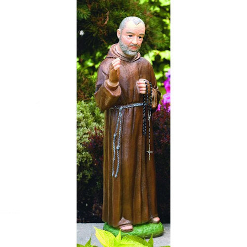 Padre Pio Large-Scale Garden Sculpture is depicted with hand blessing with gloves that conceal the stigmata. This large size sculpture of Padre Pio is a just one of those special statues that pays tribute to a Saint with bares the stigmata and the longest of any stigmatic. Is made of cement and can be finished in these timeless colors.