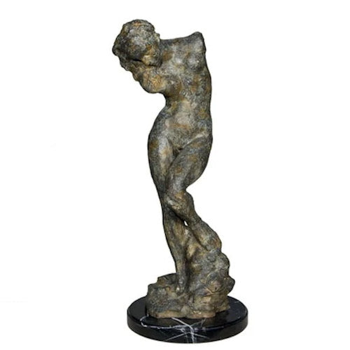 Our reproduction made of bronze of the abstract female nude torso by Auguste Rodin, similar to Eve. This modern female replica is mounted to a marble base and stands almost three feet tall. This abstract can be the center piece of your Rodin collection of replicas art this famed artist artwork. Rodin created a playful distinction between shadow and light, rendering a strong, yet vulnerable, woman intangible for mankind, but not for the artist Rodin.