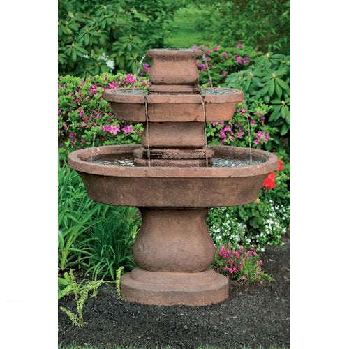 The Two Tiered Oval Assis Fountain is singular in shape and reminiscent of the old world wash basins, placed in a flower bed or in the center of your garden this fountain will be an eye catcher. Made of durable cast stone and you can choose from a large selection of color choices. Pump and set up instructions included.