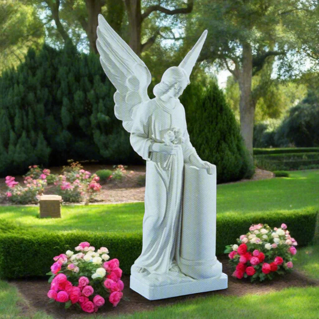 Angel With Roses Marble Memorial Sculpture. These sculptures are imported from Italy and regular shipping transport can vary to 2- 6 months for delivery, this does come by ship. If needed for a desired date or faster delivery, please call our customer service for airfreight shipping cost for faster delivery toll free at 1-877-675-2634. Statue.com looks forward to your inquires and will be happy to give shipping quotes for air freight